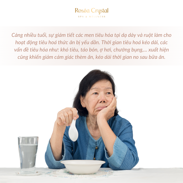 Thân nhiệt thấp khiến dạ dày hoạt động chậm, thức ăn lưu lại lâu hơn. Người cao tuổi vì thế dễ no sớm, ăn vài muỗng đã thấy đầy bụng, từ đó sinh ra tâm lý ngại ăn, ăn uống thất thường, lâu dần dẫn đến chán ăn kéo dài.