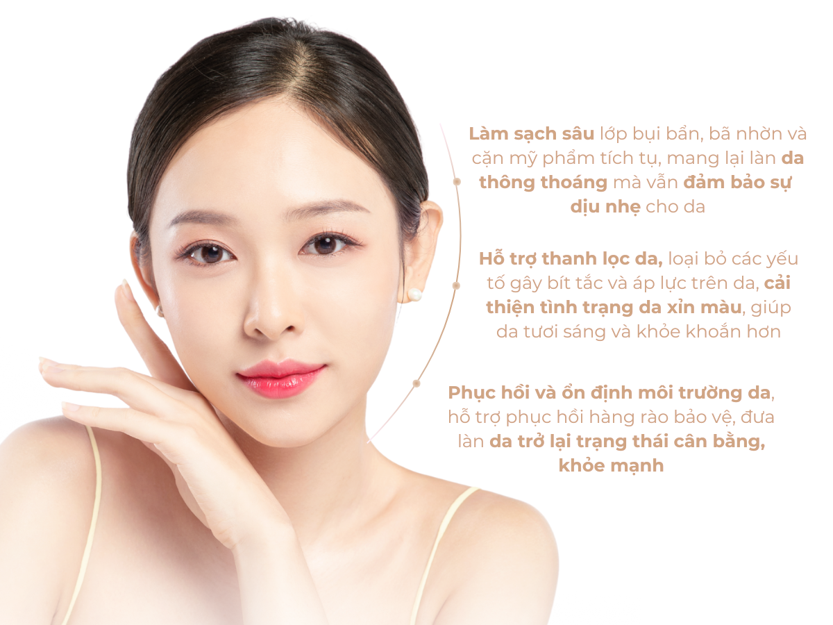 Deep Clean Detox là liệu trình làm sạch và thanh lọc da chuyên sâu, giúp loại bỏ tạp chất tích tụ, làm dịu làn da nhạy cảm và khôi phục sự cân bằng tự nhiên cho da. Mỗi bước chăm sóc được thiết kế nhẹ nhàng nhưng hiệu quả, mang lại cảm giác thư giãn và làn da sạch khỏe, mịn màng từ bên trong.